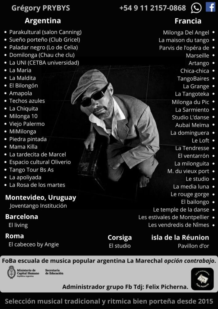 Grégory PRYBYS es tango dj desde 2015; con recorrido de 8 años en Buenos Aires y 3 en Francia. Set tradicional rítmico con perfil porteño.