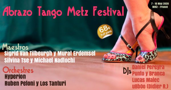 Start: 2020-05-07// End: 2020-05-10// Location: Metz// FR. The fifth edition of Abrazo Tango Metz Festival will take place in gentleness and harmony from May 7 to 10, 2020 in Metz, France. We will dance on a traditional parquet floor during the milongas and we willStart: 2020-05-07// End: 2020-05-10// Location: Metz// FR.