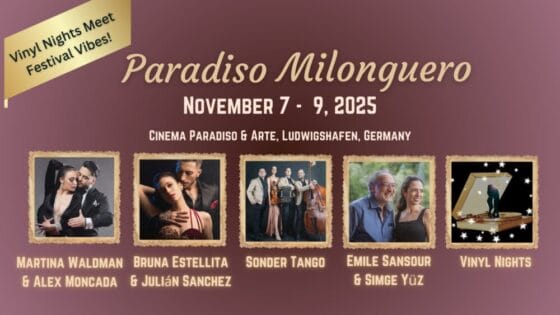 Start: 2025-11-07// End: 2025-11-09// Location: Ludwigshafen// DE// Registration Start: 2025-04-09. Welcome to Paradiso Milonguero – our brand-new format from November 7 – 9, 2025 featuring Live Music, Vinyl Nights, Shows & Workshops! Paradiso #6 will be a Premiere! For the first time,we are bringingStart: 2025-11-07// End: 2025-11-09// Location: Ludwigshafen// DE// Registration Start: 2025-04-09.