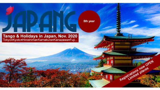Start: 2020-11-01// End: 2020-11-13// Location: TOKYO// JP// Registration Start: 2020-02-07. Tango & Japan? Sensuality, exotism, magnetism. November 1st to 13th, 2020: FIFTH JAPANGO! For the fifth year, we organise Tango holidays in the most extraordinary of places: a place where we’ve lived for a decadeStart: 2020-11-01// End: 2020-11-13// Location: TOKYO// JP// Registration Start: 2020-02-07.