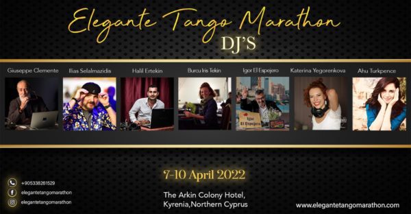 Start: 2022-04-07// End: 2022-04-11// Location: KYRENIA// CY// Registration Start: 2021-11-05. ELEGANTE TANGO MARATHON 7-10 April 2022 The Arkin Colony Hotel, Kyrenia, Cyprus. Dear All Tango Friends, We are exicited to invite you to Elegante Tango Marathon on 7-10 April 2022 in the best turisticStart: 2022-04-07// End: 2022-04-11// Location: KYRENIA// CY// Registration Start: 2021-11-05.