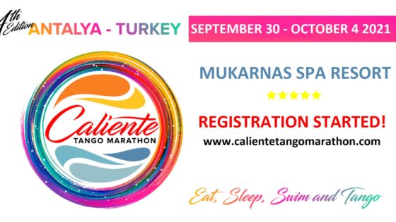 Start: 2021-09-30// End: 2021-10-04// Location: Okurcalar// TR// Registration Start: 2021-04-03. 4th Caliente Tango Marathon Antalya September 30-October 4, 2021 * Accommodation and Milongas will be at 5 star, ultra all-inclusive MUKARNAS SPA RESORT! * Total of 7 Milongas (4 All-Night Milonga, 3 Open Air milongaStart: 2021-09-30// End: 2021-10-04// Location: Okurcalar// TR// Registration Start: 2021-04-03.