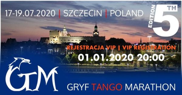 Start: 2020-07-17// End: 2020-07-19// Location: Szczecin// PL// Registration Start: 2020-01-01. English version below Z wielk? rado?ci? zapraszam Was na V ju? edycj? Gryf Tango Maratonu!!! W samym ?rodku upalnego lipca b?dziecie mieli znów mo?liwo?? zata?czy? na kolejnej edycji tego niesamowitego maratonu!!! Go?cinne, przyjazne i niezwykleStart: 2020-07-17// End: 2020-07-19// Location: Szczecin// PL// Registration Start: 2020-01-01.