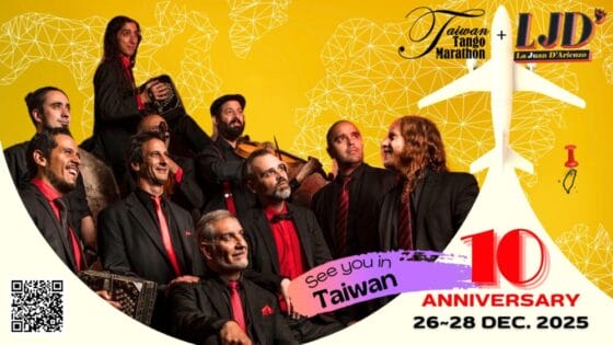 Start: 2025-12-25// End: 2025-12-30// Location: Taipei// TW// Registration Start: 2025-07-01. *9 top international DJs *2 milongas with live orchestra *3 tango concerts *3 tango music seminars *Venues including historic Site *Wooden floors *Role balanced *Limit 400 dancers *International tango market