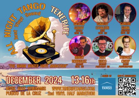 Start: 2024-12-13// End: 2024-12-16// Location: Tenerife// ES// Registration Start: 2024-05-07. For 4 days, you will have the opportunity to immerse yourself in the ALL NIGHT TANGO marathon with 28 hours of pure tango, on the island of Tenerife enjoying the captivating rhythm of vinyl music.Start: 2024-12-13// End: 2024-12-16// Location: Tenerife// ES// Registration Start: 2024-05-07.