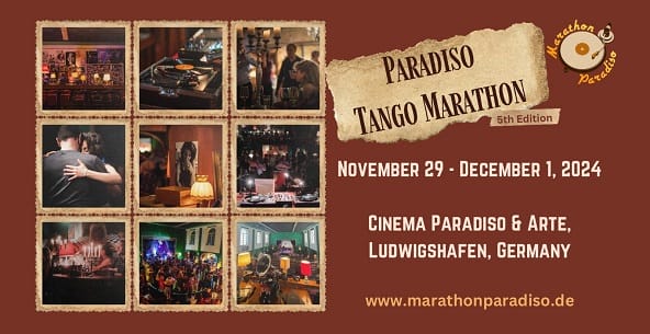 Dear Paradiso friends, we are delighted to invite you to the 5th edition of Paradiso from 29th November until 1st December, 2024! Prepare to be transported back in time for a tango weekend filled with vintage charm, high-class music, vinyl nights, and a nostalgic atmosphere. Join us for an enchanting experience in an extraordinary and unique venue in Ludwigshafen, login for more