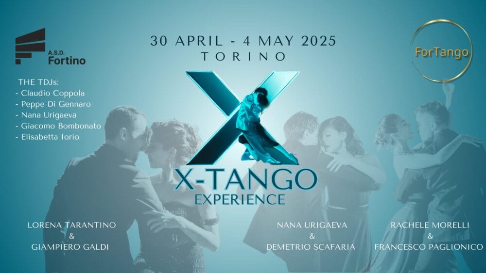 X-TANGO EXPERIENCE (from Wednesday 30 April to Sunday 4 May 2025): Five intense days of tango in Turin, featuring world-class dancers and acclaimed TDjs, who will inspire you through: